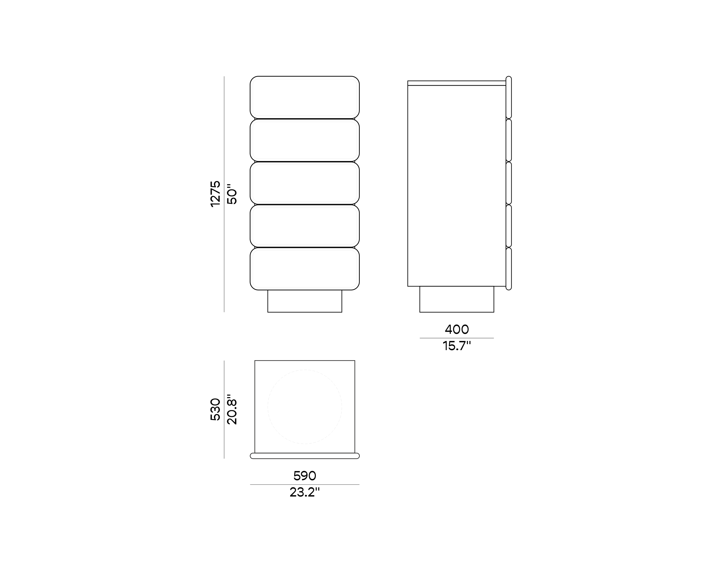 L. 23” W. 20.8” H. 50”