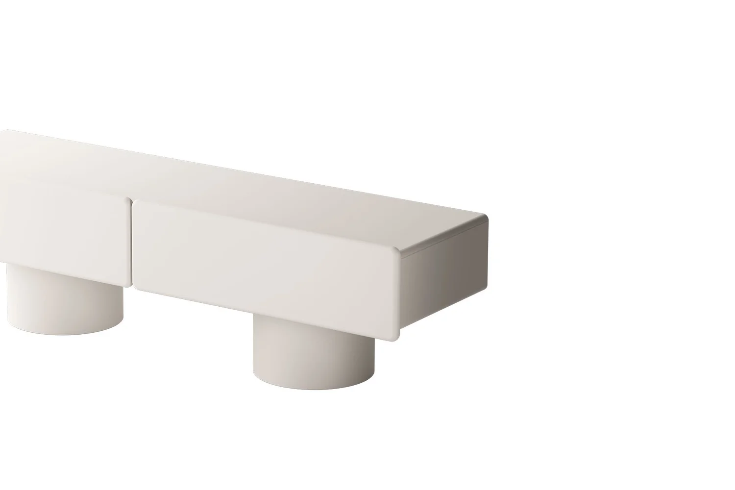 Low sideboard with 2 drawers and round legs. Rounded fronts and angles. Mat lacquer finish.